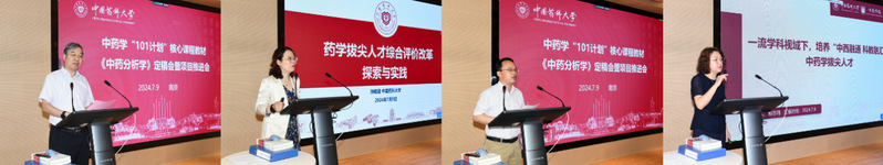 副校长孔令义首先致欢迎辞。他希望各位专家和同仁充分交流思想、凝聚共识、共同努力,高质量完成课程建设的任务,不辜负教育部中药学“101计划”项目组的支持和信任。随后,教务处处长孙敏捷及色色视频 副院长殷志琦教授分别做了“药学拔尖人才综合评价改革探索与实践”及“一流学科视域下培养中西融通、科教融汇中药学拔尖人才”的报告。