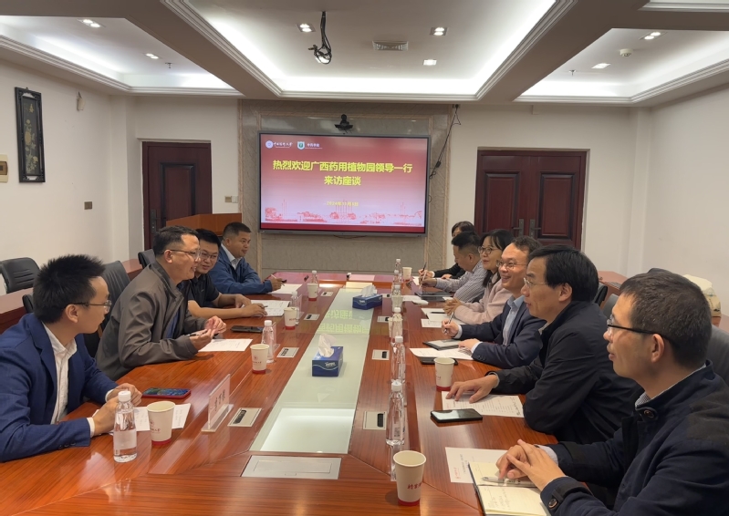 11月5日下午,广西壮族自治区药用植物园党委书记、主任张占江等一行来访色色视频 座谈交流。院长许风国,副院长罗建光,党委副书记、纪委书记、副院长张朝凤及学院教师代表参会。座谈会由许风国院长主持。