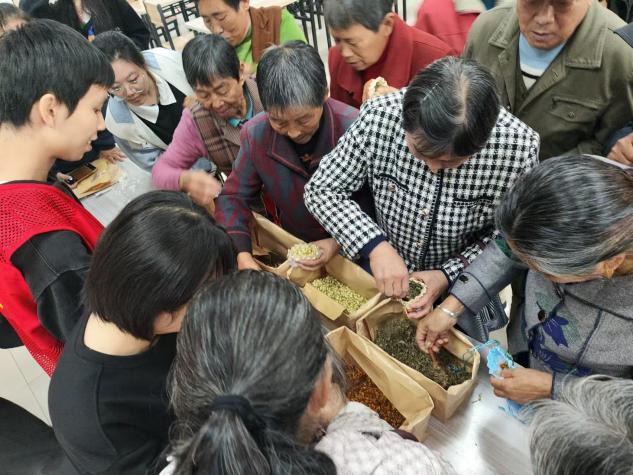 中药香囊,这一蕴含深厚文化底蕴与中医智慧的古老手工艺品,自古以来便是人们追求健康、祈福避邪的优选之物。它以细腻的织物为囊,内裹精心挑选的天然中草药,如艾叶、菖蒲、薰衣草、川芎等,每一味药材都承载着大自然的精华与生命的奥秘。支部成员耐心教授老人制作香囊,向老人介绍中药材的奇妙功用,宣扬中药香囊的独特魅力与深厚的文化底蕴,在传承与发扬传统文化的同时,更向社区民众传递对健康和美好生活的向往与追求。