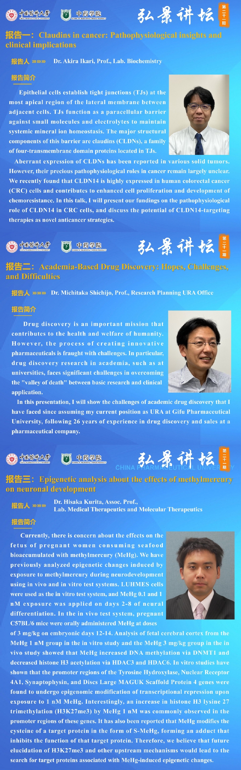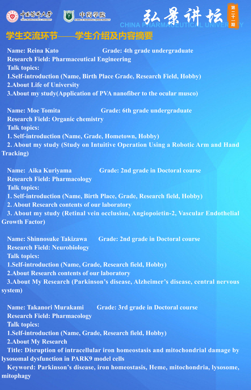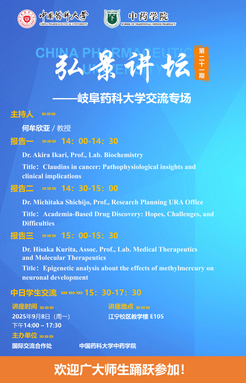 色色视频 第二十一期“弘景讲坛”:岐阜药科大学学术报告与交流通知