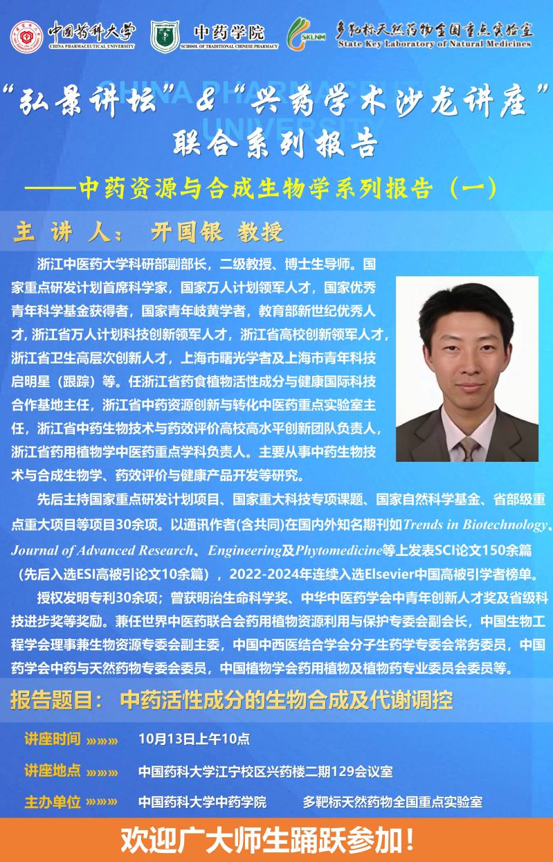 色色视频 第二十三期“弘景讲坛”暨全国重点实验室兴药学术沙龙第十六期——中药资源与合成生物学系列报告(一):浙江中医药大学开国银教授学术报告