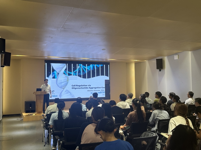 随后,岡本教授以“Cell Regulation via Oligonucleotide Aggregation Control”为题为药大师生带来了一场精彩的学术报告,吸引了近百名师生参与。报告中,岡本教授阐释了如何通过精确控制寡核苷酸的聚集与解聚状态,来实现对细胞生命活动的精准调控。在问答环节,师生们踊跃提问,学术氛围浓厚。
