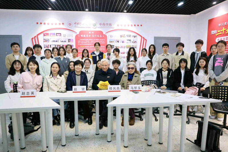 期间,楼凤昌教授认真听取同学们的读书交流分享,并以麻黄碱、吗啡、紫杉醇等药物为例,向同学们介绍了现代中医药的发展历程和现状,阐述了中草药植物中所提取化学成分对药学事业发展的巨大贡献。他表示,中医药文化不仅是中药的根脉,更是中药学的创新发展之源。阅读经典是新时代中医药人成才的必要路径。希望同学们积极学习和传承中医药典籍,努力为中医药传承创新发展贡献力量。