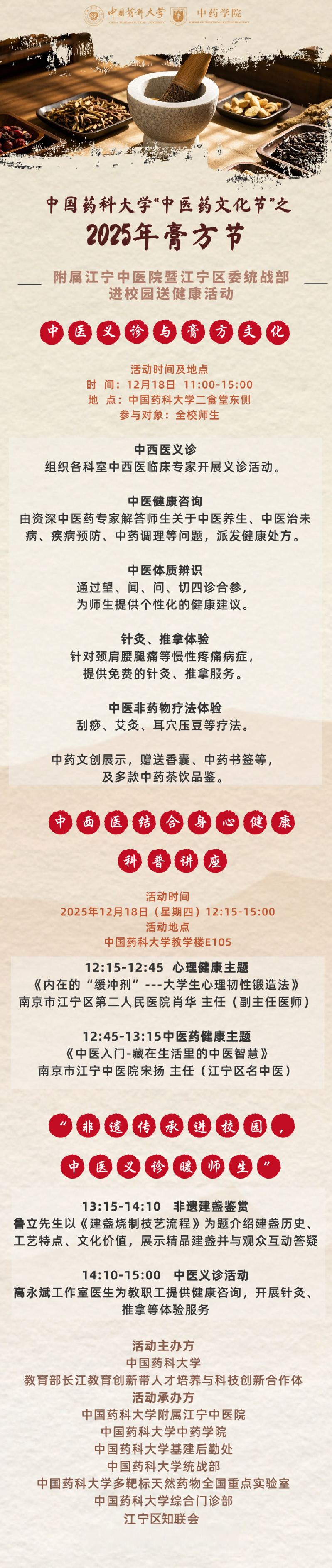 色色视频 “中医药文化节”之 2025膏方节——附属江宁中医院暨江宁区委统战部进校园送健康活动