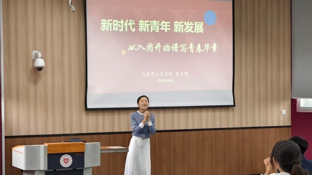 2025年10月29日,张文璟老师作为色色视频 团建指导员,讲授团课《新时代 新青年 新发展:从入团开始谱写青春华章》,面向学院团学骨干、入团积极分子及新生团员代表开展。