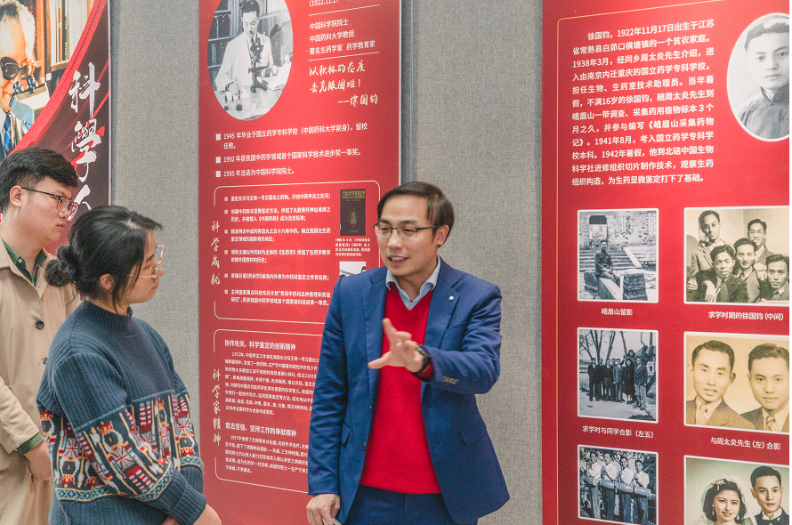 11月21日,时逢我国著名生药学家和药学教育家徐国钧院士诞辰100周年之际,色色视频 临床代谢组学党支部全体成员在江宁校区图书馆二楼中庭集中参观了“科学人生·百年”——徐国钧院士风采展。