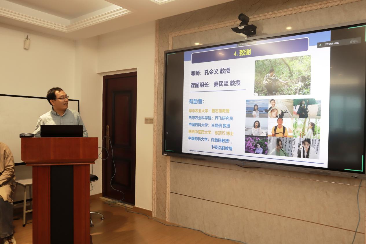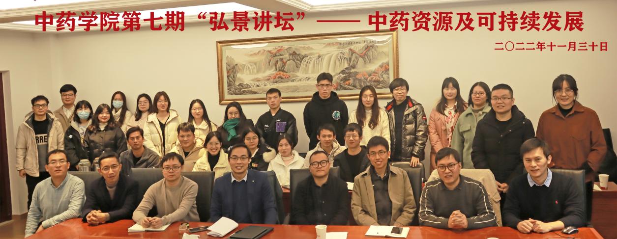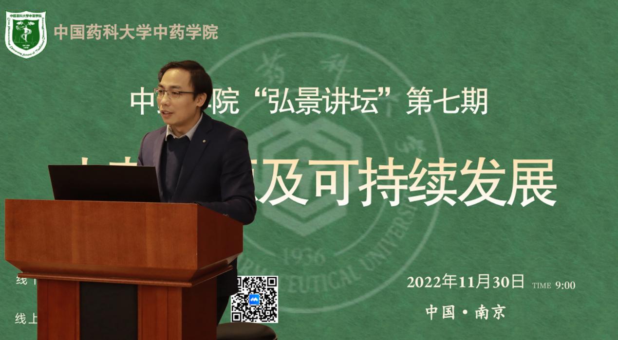 在江宁校区中药科学楼E216会议室举办第七期“弘景讲坛”,美国康奈尔大学于景印博士、我校赵玉成博士作为特邀嘉宾作报告,同时特邀我校陆续博士、尹小建博士作交流嘉宾。本期讲坛主题为“中药资源及可持续发展”,采取线上线下相结合的方式进行。院长齐炼文教授担任主持人。