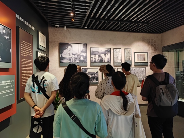 面对珍贵文物、文献档案、历史照片、影像资等,同志们时而注目凝思、时而低语讨论,此次参观将《中国共产党代表团梅园新村纪念馆故事》书中阅读的内容与实际场景、史实结合起来,书上的词汇变成可见可感的实物实景。党员们对以周恩来为代表的老一辈无产阶级革命家当年所处的复杂危险环境有了更深的体会,感受他们所具有的坚定的理想信念、无私无畏的革命精神和斗争智慧。随后,全体党员们来到南京谈判史料馆展厅,与一同学习参观的色色视频 2022级博士生党支部重温入党誓词,进一步坚定理想信念。