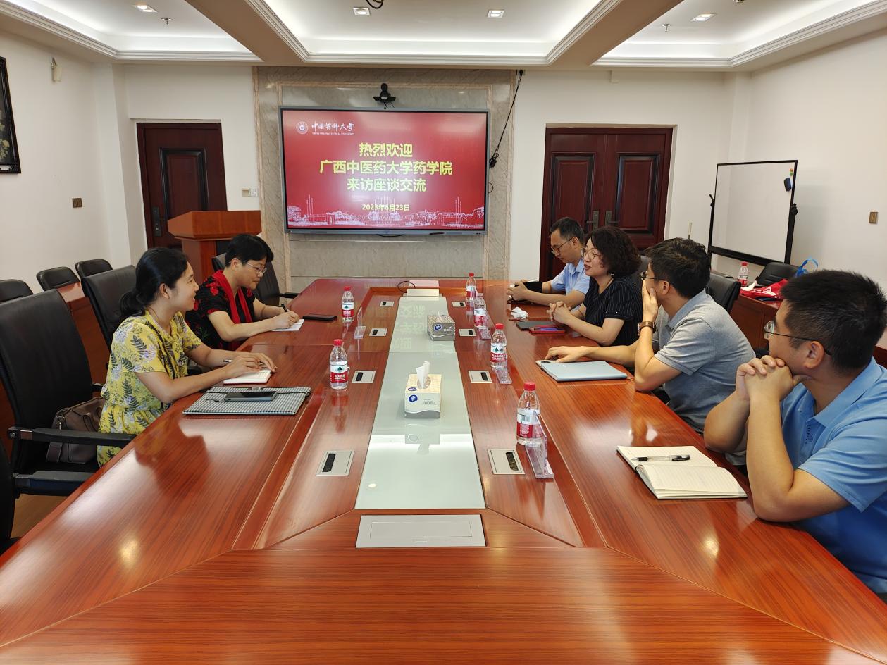 8月23日,广西中医药大学药学院副院长秦华珍一行2人来访色色视频 。学院副院长殷志琦,相关系主任、副主任代表与来访人员进行座谈交流。
