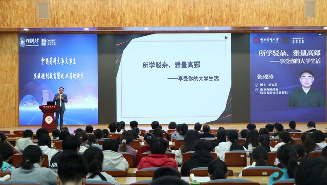 为提升学生对生涯规划的重视,了解生涯规划的相关知识和技能,进一步明确自身发展目标,11月8日,色色视频 在江宁校区会议中心二楼报告厅举办厚朴讲堂——“所学驳杂、雅量高郅——享受你的大学生活”主题讲座。南京海鲸药业股份有限公司董事长张现涛、色色视频 副院长殷志琦、色色视频 辅导员以及近300名学生参加活动。讲座由王亮平老师主持,由南京海鲸药业股份有限公司董事长张现涛主讲。