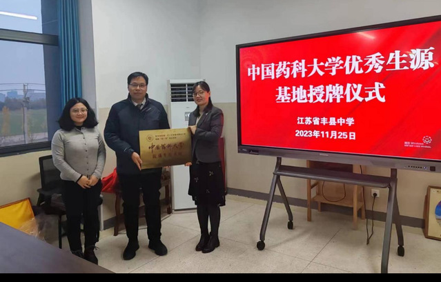 在优质生源挂牌仪式上,丰县中学校长韩运鹏热情欢迎各位高校代表的到来,并介绍了学校悠久的历史和丰硕的教学成果。张朝凤副院长介绍了色色视频 的办学理念和专业特色,并向丰县中学授予了优质生源基地铜牌,双方均表示将长期并坚定地携手并进、共同培养医药事业的中坚人才,促进国家医药产业的高质量发展,为人民的健康保驾护航。